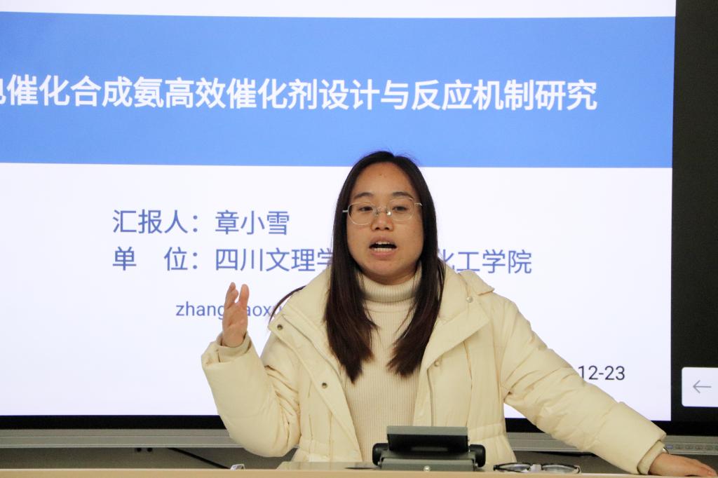 为搭建学术交流平台,分享最新研究成果与技术进展,促进学科交叉融合,2025年12月23日,威廉希尔(WilliamHill)于南坝校区“一站式”戛云社区开展主题为“电催化合成氨高效催化剂设计与反应机制研究”的座谈会。本次座谈会由章小雪博士担任主讲,共22名学生参与本次座谈会。