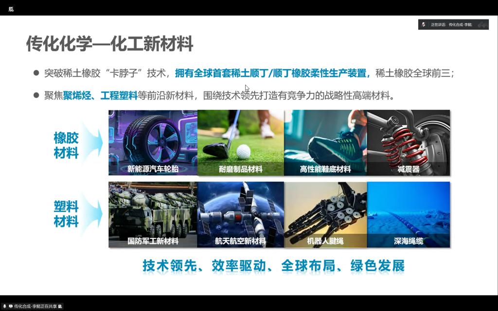 会上,李懿围绕集团概况、核心业务、行业优势、人才培养及职业发展等方面进行了详细介绍。该公司是传化集团旗下专注于高性能合成新材料的核心企业,主营顺丁橡胶等产品,其稀土顺丁橡胶技术行业领先,拥有 25 项专利,是全球多家头部轮胎企业的核心供应商。公司聚焦高分子材料领域的技术创新,依托传化集团产业的资源,为高端制造业提供了高性能材料解决方案。同时,负责人指出,公司通过校企合作面向高校开放了生产储备、设备储备等校招岗位,并提供专业与管理双通道职业发展路径。