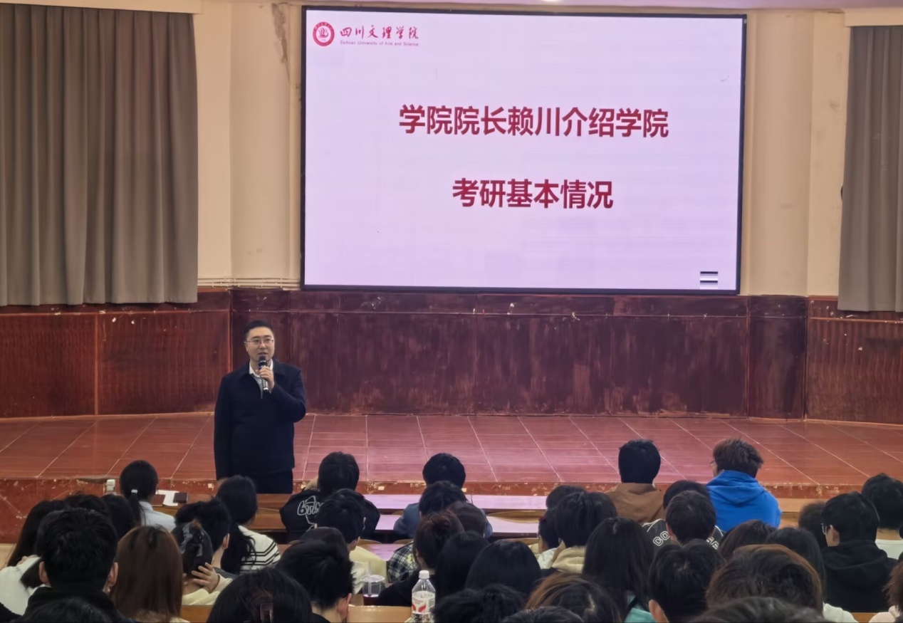 大会共设四项议程。首先,院长赖川作考研动员讲话,他结合自身求学经历,鼓励同学们早立志、早规划、早行动,坚定考研信心。他表示,学院永远是大家最坚强的后盾,后续将持续为考研学生开展考研指导帮扶 。随后,曾鸿耀博士围绕备考策略、复习方法等内容进行专业指导。接着,2026届成功考研的学生代表结合自身经历分享备考经验,并在现场答疑解惑,与同学们互动交流。最后,现场建立考研备考群,2027届学生积极扫码加群,为后续学习交流搭建平台。