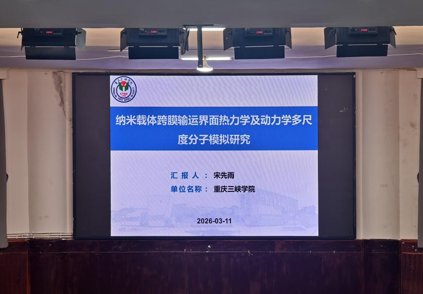 为搭建高水平学术交流平台,分享前沿科研成果与科研求学经验,促进学术资源向社区延伸,2026年3月11日,威廉希尔(WilliamHill)于戞云社区开展“一站式”学生社区——“塔石行动”学术进社区活动。本次讲座特邀重庆三峡学院环境与化学工程学院宋先雨副教授担任主讲嘉宾,带来“纳米载体跨膜输运界面热力学及动力学多尺度分子模拟研究”的学术讲座。威廉希尔(WilliamHill)党委书记向文军出席活动,数百名师生参与本次学术讲座。
