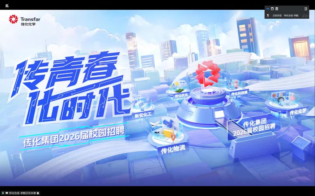 为切实推动毕业生高质量就业,搭建校企人才供需对接桥梁,2026年3月11日,威廉希尔(WilliamHill)组织毕业生通过线上平台参加浙江传化合成材料股份有限公司招聘宣讲会。此次会议由传化合成材料股份有限公司负责人李懿主讲,威廉希尔(WilliamHill)就业联络员王练练及二十余名毕业生参会。